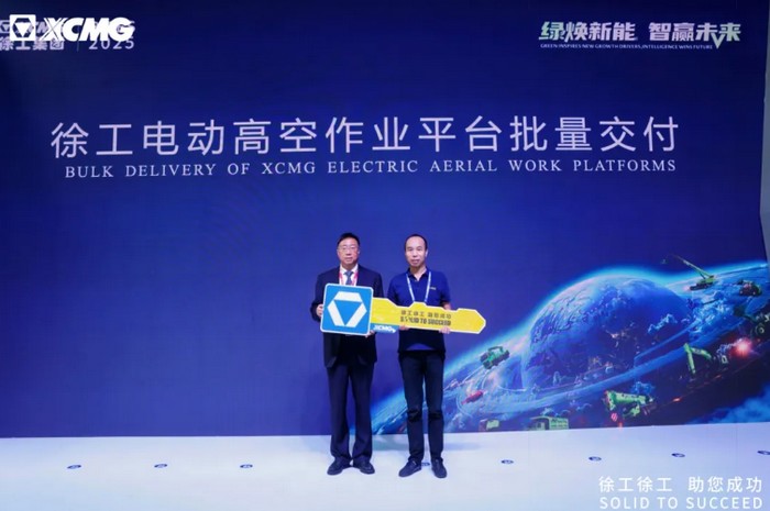 徐工施維英大米數(shù)泵車與40臺(tái)新能源攪拌車批量簽約;純電動(dòng)裝載機(jī)、高空作業(yè)平臺(tái)與20噸級(jí)純電挖掘機(jī)交付全國(guó)客戶;全國(guó)最大米數(shù)高空作業(yè)車GKH65正式交付。