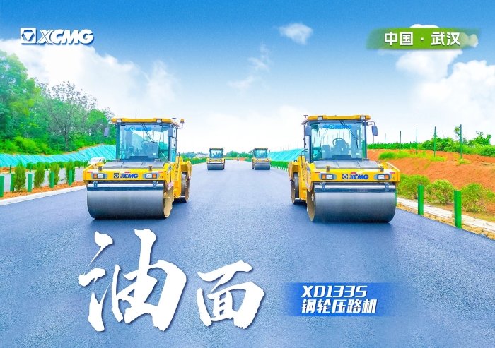 緊跟著攤鋪工作上場的,是我們的老朋友——4臺XD133S雙鋼輪壓路機,由它們進行路面初壓及復(fù)壓。這款壓路機誕生之出就備受矚目,已經(jīng)征戰(zhàn)過各類重大工程;尤其它的柔性行駛起??刂萍夹g(shù),能有效消除整機對路面的推擠,避免產(chǎn)生擁包,在提高路面平整度方面的實力有目共睹。