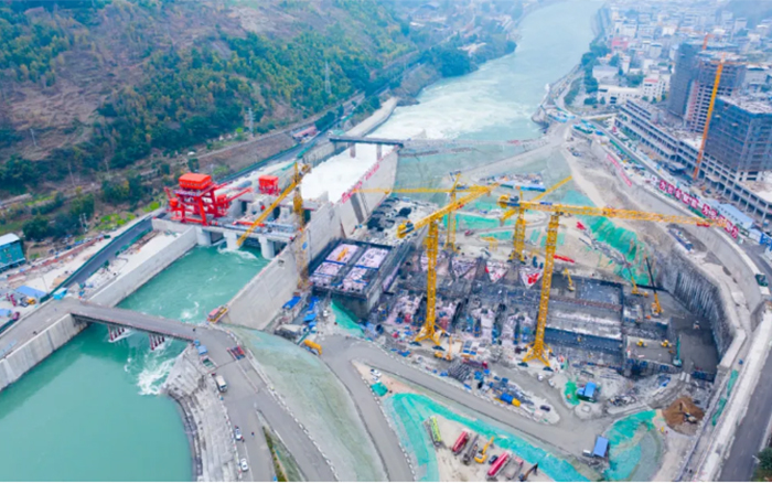 該水電站位于四川省樂山市金口河區(qū)境內(nèi),是四川省“十四五”重點建設(shè)項目,項目完成后,總裝機容量30萬千瓦,預(yù)計年平均發(fā)電量15.03億千瓦時,對促進(jìn)國家清潔能源基地建設(shè)、實現(xiàn)“雙碳”目標(biāo)意義重大。項目主要設(shè)有五孔泄洪閘、發(fā)電廠房、兩岸混凝土重力壩、魚道等水工建筑物,壩體最高54米。