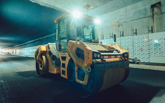 某隧道數(shù)字化智能施工是國內(nèi)首次在城市地下長隧道中進(jìn)行無人攤鋪、壓實(shí)新工藝應(yīng)用。擔(dān)任壓實(shí)工作的也正是徐工XD135TIV壓路機(jī),在狹窄的作業(yè)空間內(nèi)展現(xiàn)出強(qiáng)大的施工能力。它的起步平緩和停車平穩(wěn)的設(shè)計(jì),有效避免了路面堆料和擁包現(xiàn)象,確保了每一段路面的高質(zhì)量壓實(shí),節(jié)省了大量時(shí)間和成本。