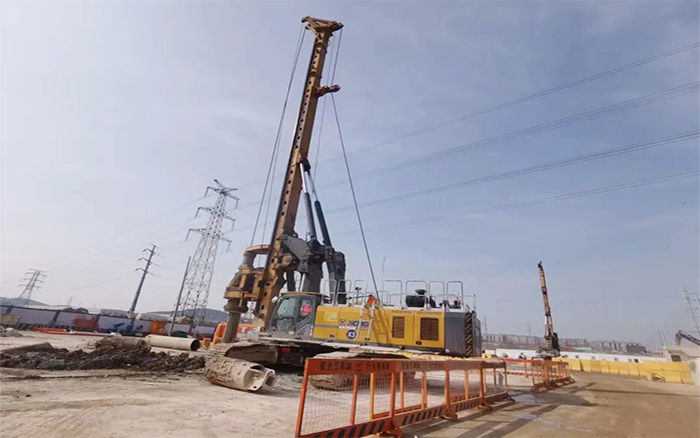 徐州地層有灰?guī)r,硬度80Mpa以上。施工環(huán)境復雜,地質條件多變,徐工旋挖鉆機首當其沖,干勁十足!