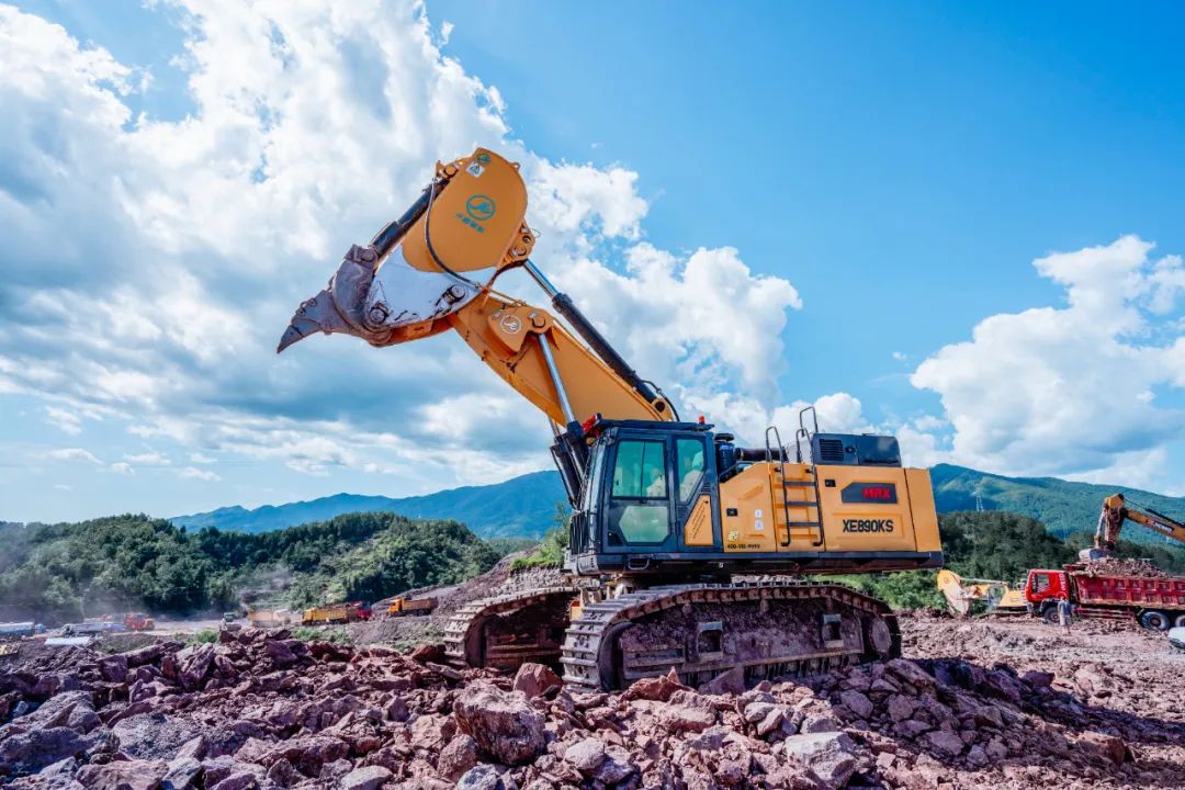 而另一款吸睛產(chǎn)品——徐工XE890KS巖石臂,專為非爆破開(kāi)挖設(shè)計(jì),配備百噸級(jí)動(dòng)力,瞬時(shí)爆發(fā)力強(qiáng),挖掘力更大,重載作業(yè)更有勁。針對(duì)履帶底盤(pán)、配重、使用能效水平等方面進(jìn)行全方位提升,配備專屬作業(yè)機(jī)具“鷹鉤臂”,在非爆破礦山、地基開(kāi)挖等作業(yè)場(chǎng)景中有著得天獨(dú)厚的優(yōu)勢(shì)。