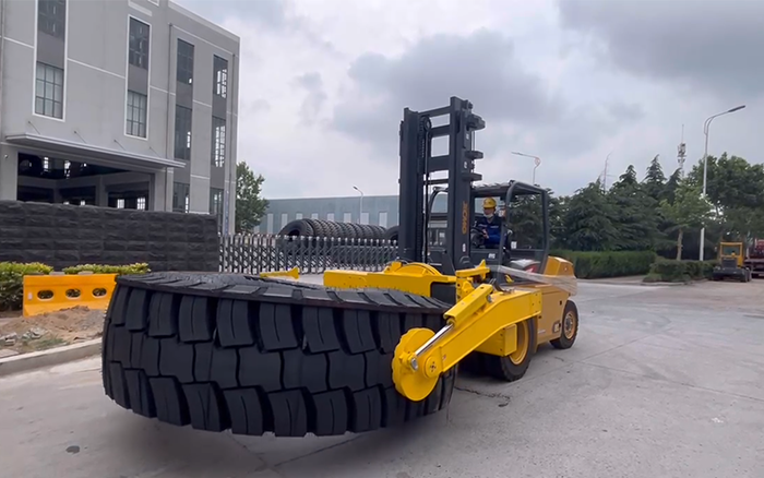 近日,在山東地區(qū)某大型輪胎廠內(nèi),徐工孔雀系列高壓重載鋰電 8 噸叉車,靈活適配屬具輪胎夾,正在高效進(jìn)行輪胎搬運(yùn)作業(yè),助力客戶達(dá)成生產(chǎn)目標(biāo)。