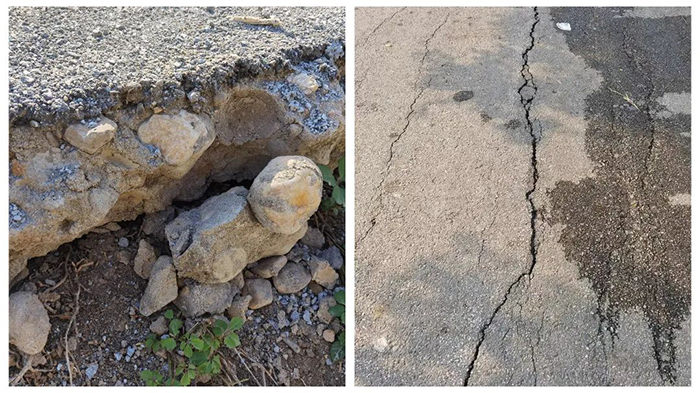 該路段由20cm水穩(wěn)砂基層+4cm瀝青混凝土面層組成,面層出現(xiàn)了大量的開裂、車轍、沉陷等病害,損壞嚴(yán)重,前期養(yǎng)護(hù)都是對(duì)路面損壞處進(jìn)行局部處理。