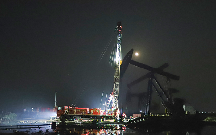 在中國北部某開采油田現(xiàn)場,一場“綠色修井”作業(yè)正如火如荼。20余米的井架高聳佇立,井口流出的油水經(jīng)自動(dòng)導(dǎo)流裝置流至集油槽中,點(diǎn)滴不落地。