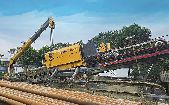XZE8200電驅(qū)水平定向鉆機設備的額定推拉力即可達800t,最大扭矩180kN·m,具有系統(tǒng)控制精度高、智能化程度高、自動化水平強的技術(shù)特點,下線即交付,歷時2年,3600h施工驗證,累計穿越距離8000多米。