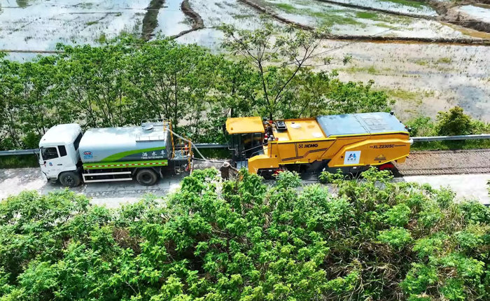 針對這些痛點(diǎn),徐工智慧施工技術(shù)成套道路裝備全場景解決方案,專門針對鄉(xiāng)村道路施工場景,制定了適配的場景解決方案。該方案融合了推土、平地等多項(xiàng)3D控制技術(shù),并配備水泥路面冷再生機(jī),實(shí)現(xiàn)了全斷面的數(shù)據(jù)融合,有效消除了原有路面的缺陷。特別值得一提的是,該方案將北斗定位技術(shù)與慣性導(dǎo)航系統(tǒng)相結(jié)合,巧妙解決了在定位信號不佳區(qū)域的施工難題。