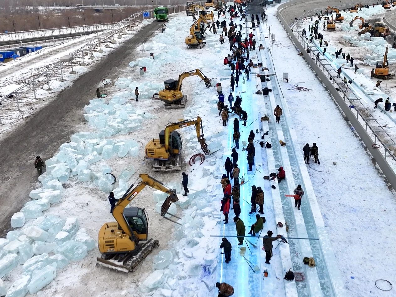 全長(zhǎng)500米的“冰雪大滑梯”無疑是園區(qū)內(nèi)的“人氣王”,今年迎來了重磅升級(jí),滑梯滑道增加至24條,徐工挖掘機(jī)在滑梯建設(shè)中起到了關(guān)鍵作用。