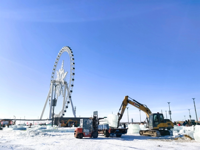 本屆哈爾濱冰雪大世界以“冰雪同夢(mèng) 亞洲同心”為主題,園區(qū)設(shè)計(jì)和建設(shè)充分融入2025年第九屆亞冬會(huì)元素,打造一座更加氣勢(shì)恢宏、美輪美奐的冰雪主題樂園。在這個(gè)以冰雪鑄造的王國(guó)中,徐工中小型挖掘機(jī)負(fù)責(zé)運(yùn)輸冰塊的重要工作,展現(xiàn)了它們力大無窮的一面。