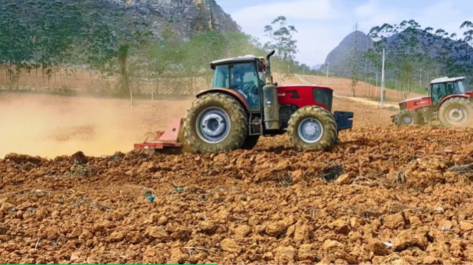 在完成耕深約50厘米的犁地作業(yè)后,牽引著3米幅寬的重型旋耕機(jī)穩(wěn)穩(wěn)駛過蔗田,對25厘米耕作層進(jìn)行精細(xì)化碎土整地,有效改善板結(jié)土壤結(jié)構(gòu)。