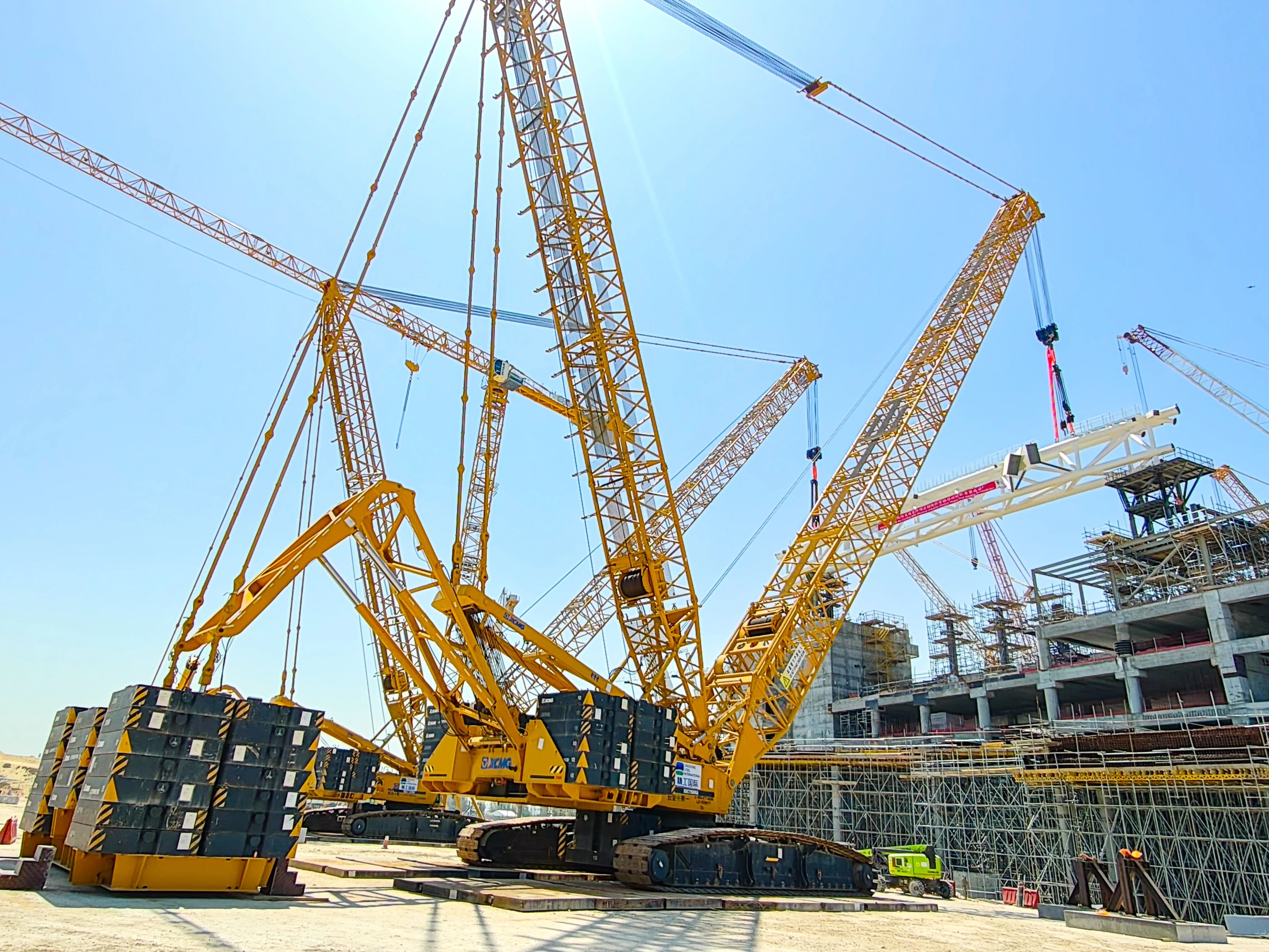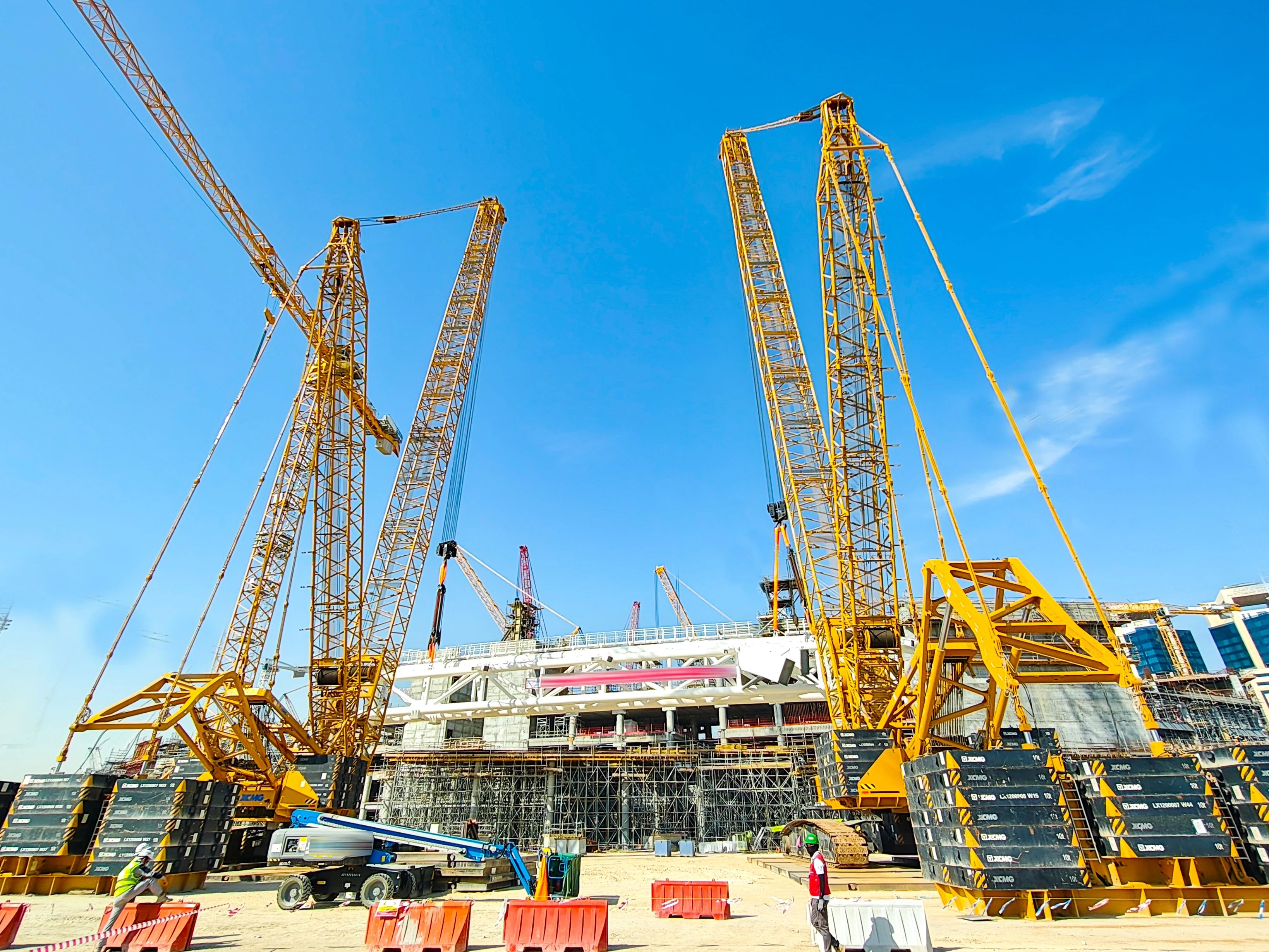 除了“雙雄”,徐工起重機(jī)械全系產(chǎn)品也在項(xiàng)目大顯神通。XGC400-I高效承擔(dān)桁架拼裝任務(wù),XGC320批量完成看臺(tái)骨架吊裝作業(yè),XGTC95、XGTC55等小噸位設(shè)備則靈活穿梭于場(chǎng)館附屬結(jié)構(gòu)安裝區(qū)域,助力項(xiàng)目節(jié)點(diǎn)高效完成。