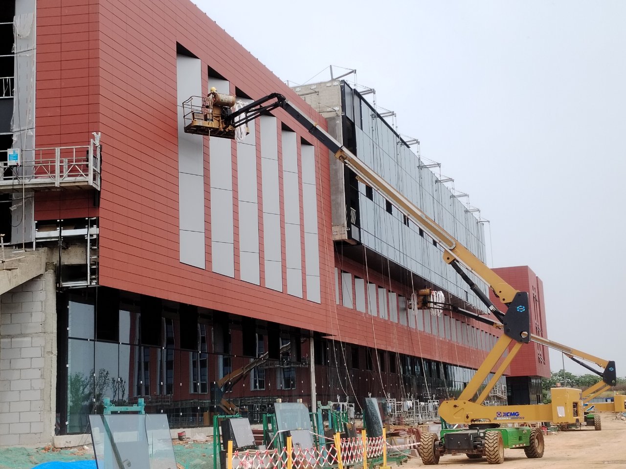 在武漢經(jīng)開區(qū)中國電子云研發(fā)基地一期項(xiàng)目中,徐工2臺(tái)XGS28ACK-Li電動(dòng)直臂式高空作業(yè)平臺(tái)以“零排放、高精度、智能化”的核心優(yōu)勢(shì),為數(shù)據(jù)中心鋼結(jié)構(gòu)安裝及外立面部署提供了高效解決方案。該項(xiàng)目作為國內(nèi)信創(chuàng)云領(lǐng)域的標(biāo)志性工程,總建筑面積達(dá)30萬平方米,聚焦人工智能、云平臺(tái)等前沿技術(shù),對(duì)施工環(huán)境潔凈度、能源效率及安全管理提出嚴(yán)苛要求。