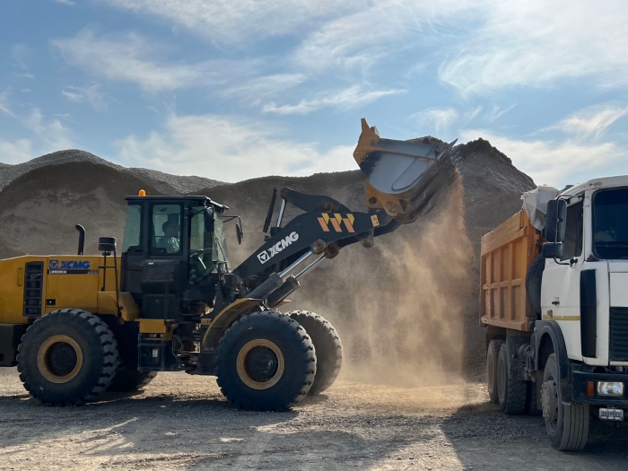 西亞某礦山,一臺LW600KN正高速運轉,將滿載的一鏟鏟剛開采出的砂石料裝車發(fā)往建設現(xiàn)場,助力當?shù)亟ㄔO。