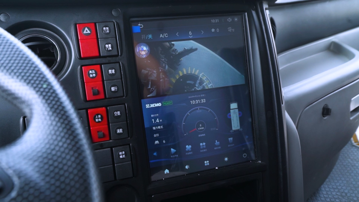 走進駕駛室,集成式12.1寸觸控大屏絕對是一大亮點。操控、顯示、監(jiān)控功能融為一體,既不占用額外空間,又不會遮擋視野,駕駛員操作時無需轉身,上下車也毫無阻礙。