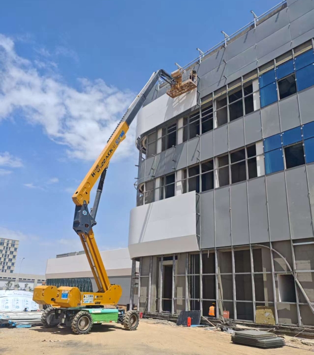 在蘭州機場保障樓外立面施工項目中,徐工XGS22ACK-Li直臂式高空作業(yè)平臺憑借其卓越性能成為項目建設的關(guān)鍵利器。