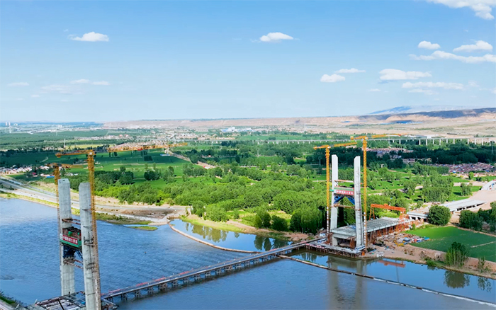 中衛(wèi)下河沿黃河公路大橋全長1228米,主塔高113米,相當(dāng)于40層樓高,是目前寧夏單跨跨徑最長、樁基最深、樁徑最粗、承臺(tái)混凝土量最大、主塔最高的斜拉橋,單體施工體量為寧夏橋梁建設(shè)史上之最。