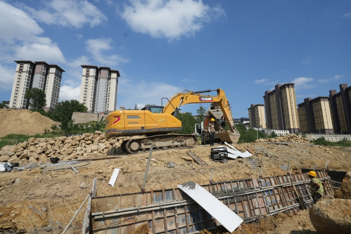 2024年初,近十臺(tái)身披“徐工金”的XE200GA挖掘機(jī)作為項(xiàng)目“開荒者”率先進(jìn)駐工地,承擔(dān)起開荒挖裝、圍擋模具吊裝、圍擋澆筑等關(guān)鍵基礎(chǔ)作業(yè)。