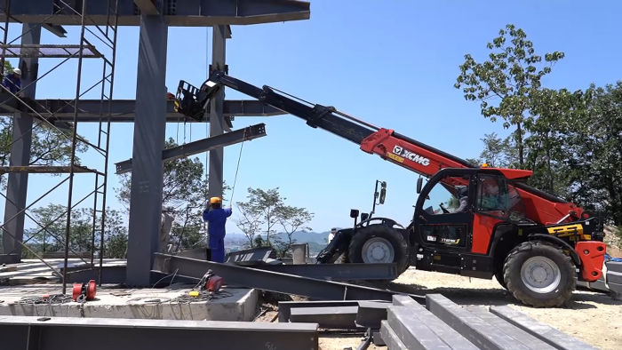 搭載鏟斗屬具變身“清潔大師”,打掃清理施工場地;使用貨叉屬具,搬運(yùn)鋼結(jié)構(gòu)材料穩(wěn)如泰山;配上卷揚(yáng)機(jī),又穩(wěn)穩(wěn)當(dāng)當(dāng)將鋼架構(gòu)安裝到位;活脫脫上演一場“72變”秀實(shí)力,贏得客戶連連點(diǎn)贊。