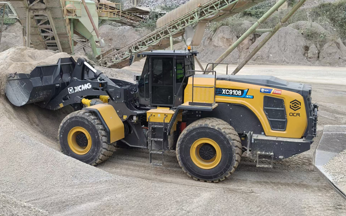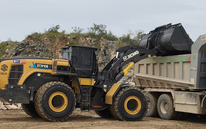 在東南亞某大型采石場,徐工XC9108-EV純電動裝載機正繁忙作業(yè)。這臺“鋼鐵巨獸”輕松鏟裝、轉(zhuǎn)運著沉重石料,成為這座采石場綠色轉(zhuǎn)型的核心力量。