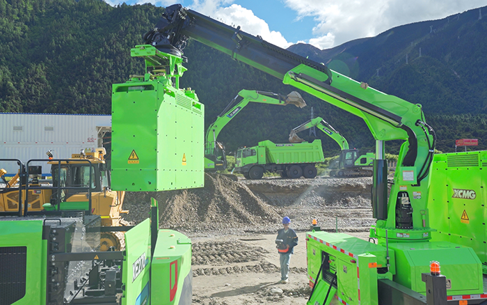 作為成套換電式工程機(jī)械的核心裝備,它覆蓋場(chǎng)景廣泛 —— 戶外常規(guī)施工場(chǎng)地中,可同時(shí)服務(wù)挖掘機(jī)、裝載機(jī)、自卸車、混凝土攪拌車等多類電動(dòng)裝備,無(wú)需單獨(dú)配置補(bǔ)能設(shè)備。