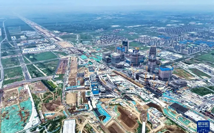 在雄安新區(qū)啟動區(qū)金融島核心地帶,XGT7022等十余臺徐工塔吊如同鋼鐵巨人般矗立在建設(shè)現(xiàn)場,與明珠湖對岸的國貿(mào)中心建筑群遙相呼應(yīng),它們正以毫米級精度吊裝著總重量超萬噸的鋼結(jié)構(gòu)模塊。