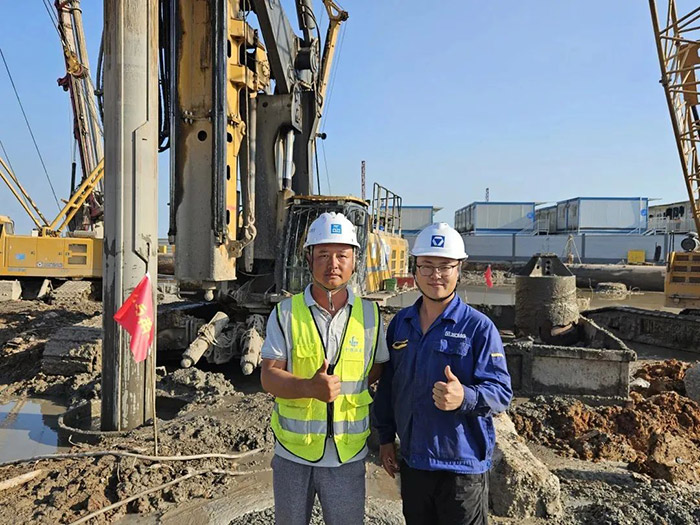 旋挖鉆機(jī)群不間斷施工的同時(shí),徐工技術(shù)人員與服務(wù)團(tuán)隊(duì)全天候走訪(fǎng)巡檢,有力保障項(xiàng)目工期節(jié)點(diǎn)。