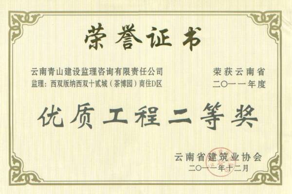 2011年版納項(xiàng)目獲得“優(yōu)質(zhì)工程二等獎(jiǎng)”