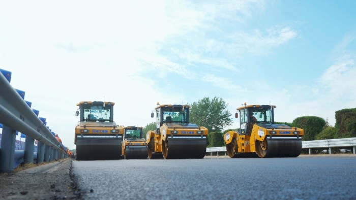 隨后,由XD133S鋼輪壓路機(jī)進(jìn)行壓實(shí)和收面: