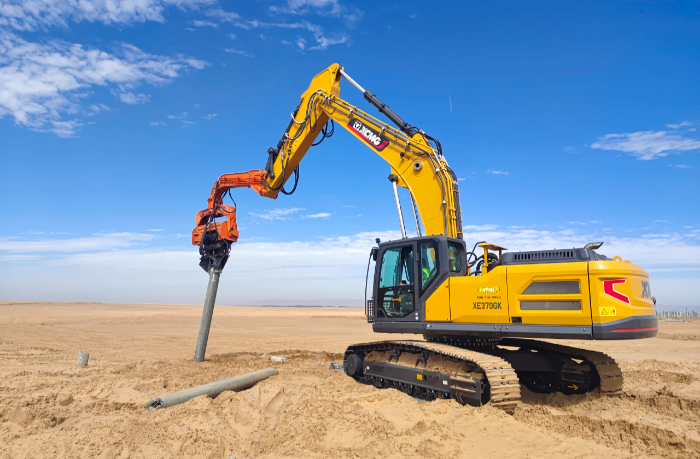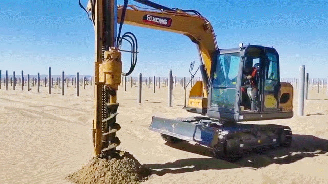 此次徐工挖掘機參建的巴彥淖爾100萬千瓦光儲+生態(tài)治理項目位于內(nèi)蒙古西部,是自治區(qū)年度重點工程,對當?shù)刭Y源開發(fā)和綠色發(fā)展具有重要意義。 與以往常規(guī)項目不同,此次徐工挖掘機主要擔任光伏樁的鋪設工作,通過改裝振動錘和引孔機等多功能屬具,有效滿足現(xiàn)場多元化施工需求。
