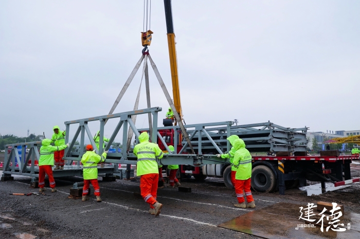 本次演練以山洪爆發(fā)、泥石流、臺(tái)風(fēng)等極端氣候造成的道路內(nèi)澇深坑積水、道路大面積塌方、公路橋梁沖毀以及?;愤\(yùn)輸車(chē)泄漏等特殊情況為背景,模擬公路水毀阻塞交通、橋梁垮塌中斷交通,演練隊(duì)伍嚴(yán)正執(zhí)行,在規(guī)定時(shí)限內(nèi)迅速完成桁架拼裝、橋面鋪設(shè)、橋梁落座,完成公路應(yīng)急裝備漕渡任務(wù)。