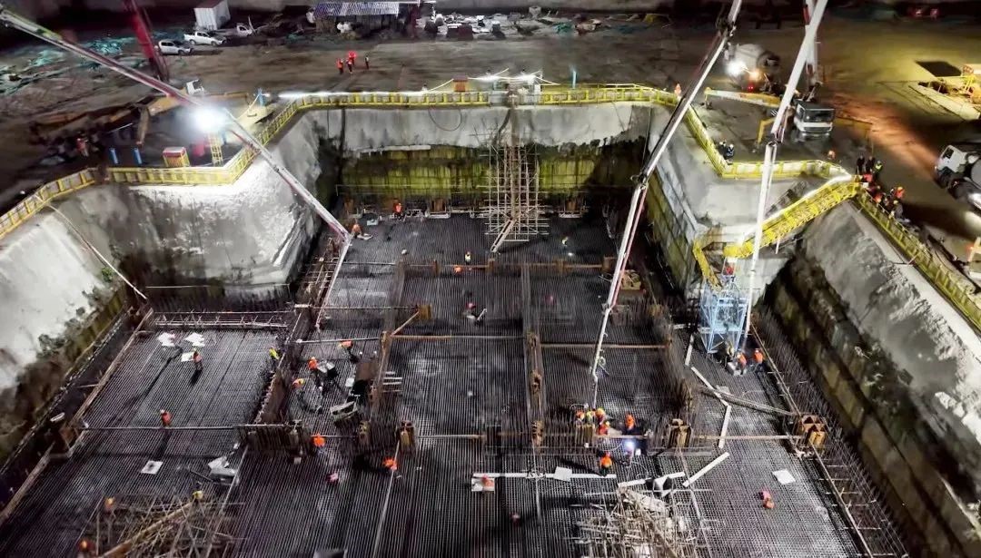 施工現(xiàn)場(chǎng),三臺(tái)徐工大米數(shù)泵車臂架齊伸、晝夜不休,48小時(shí)完成9300立方米澆筑量,高效、穩(wěn)定、精準(zhǔn)地完成泵送任務(wù),助力項(xiàng)目實(shí)現(xiàn)重要節(jié)點(diǎn)目標(biāo)。
