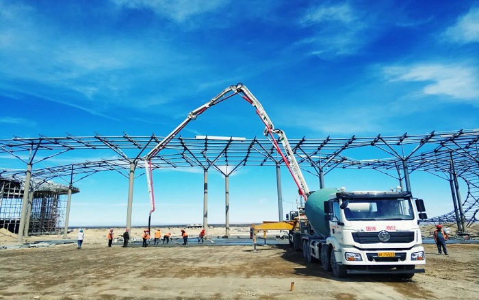 賀蘭山下,塞上江南。近日,中寧±800千伏換流站廠房施工現(xiàn)場(chǎng),徐工兩橋37米泵車靈動(dòng)作業(yè),閃耀寧夏大地。