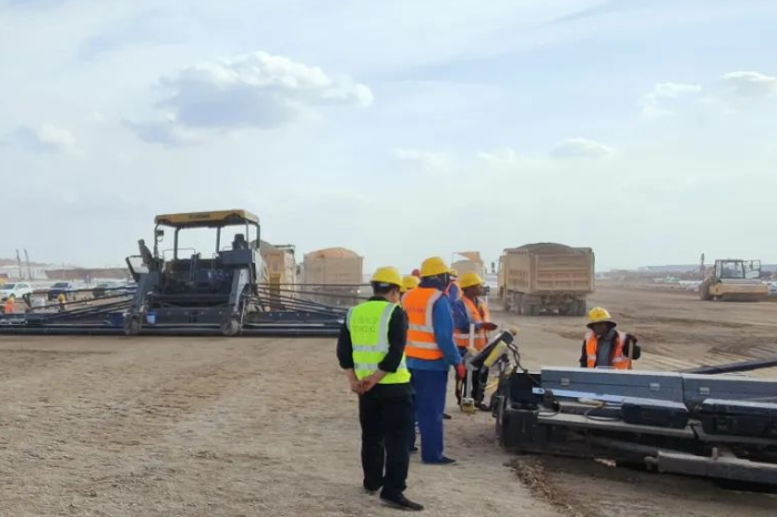 在跑道鋪設(shè)的施工現(xiàn)場