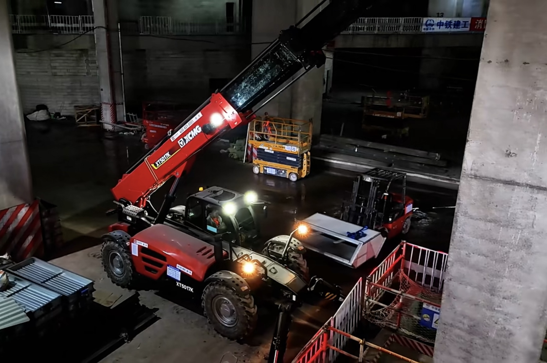 此次項(xiàng)目需要把1000斤左右的通風(fēng)管道舉到10米左右的高空讓工人進(jìn)行安裝,由于現(xiàn)場(chǎng)還在緊張施工,作業(yè)空間十分狹小,相比于吊車,叉裝車的小巧身軀完美適配現(xiàn)場(chǎng)工況,轉(zhuǎn)場(chǎng)方便,成為施工首選。