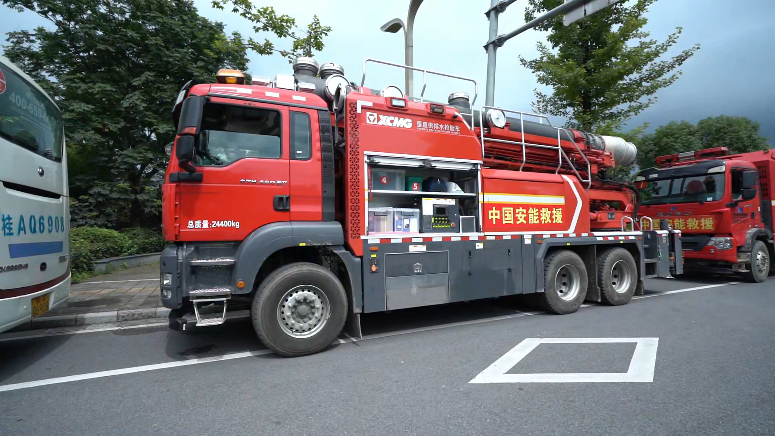 作為當(dāng)?shù)刂匾慕煌屑~,桂林火車站擁有一個占地約8000㎡的地下車庫,暴雨引發(fā)的城市內(nèi)澇如灌注一般將上下兩層地下車庫淹沒至兩端入口。6月21日接到任務(wù)后,救援隊伍當(dāng)機立斷,連夜奔襲,出動徐工GP35C垂直式排水搶險車,從地庫入口處進行抽排水搶險作業(yè)。經(jīng)過72小時連續(xù)作業(yè),累計抽排水超30000m3,最終于24日上午圓滿完成任務(wù)。