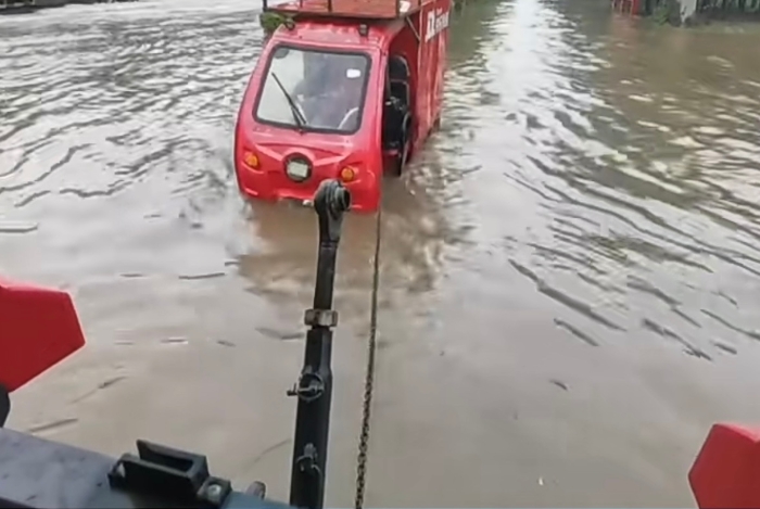 憑借產(chǎn)品動力強(qiáng)勁、牽引力大等優(yōu)勢,迅速幫助涉水車輛脫險。徐工拖拉機(jī)將部分受困車輛和物資轉(zhuǎn)移至安全地帶,為災(zāi)區(qū)人民提供了及時有效 的幫助。