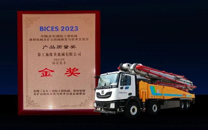在2024年中國工程機械工業(yè)協(xié)會會議上,徐工HB62VH插混泵車榮獲BICES 2023“產(chǎn)品質(zhì)量金獎”,贏得了市場的廣泛認可。