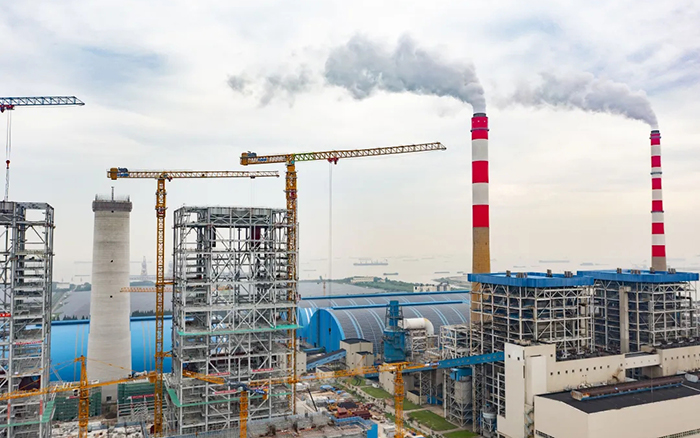 側望長江畔,機器轟鳴、江水潺潺,華能太倉電廠機組擴建項目施工現(xiàn)場一派繁忙景象,XGT3100-160S、XGT1350-64S兩臺徐工超大塔穩(wěn)穩(wěn)矗立在高聳的鋼架間吊裝作業(yè)。