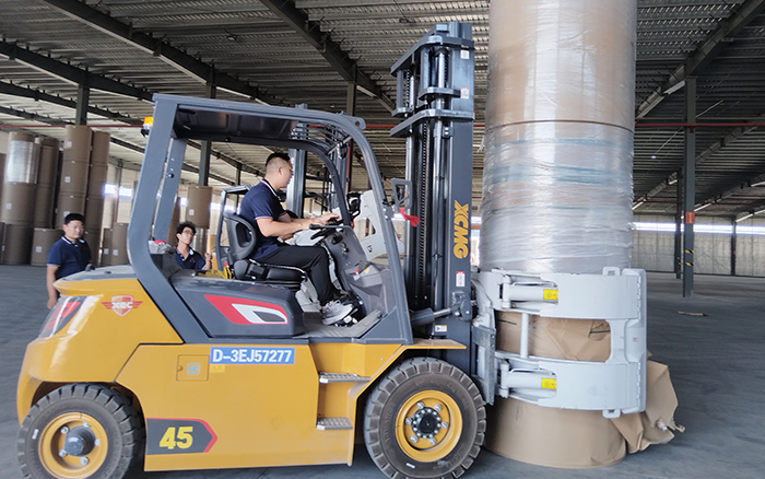 近日,徐工孔雀系列叉車批量交付華中地區(qū)某大型造紙企業(yè)。這批叉車迅速投入紙張搬運(yùn)作業(yè),助力企業(yè)高效生產(chǎn)。