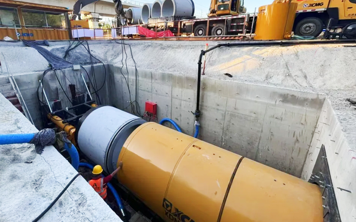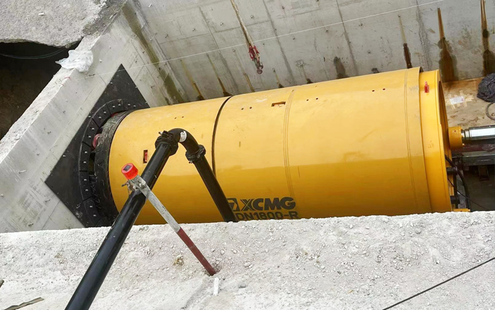 本次頂管穿越巖層為強風化片麻巖層,與上覆砂層最小厚度僅為1m,頂進時有較大塌方風險。為了確保頂管施工安全,客戶自行采購了國內先進的徐工XDN1800-R“泥水平衡”巖石頂管設備。