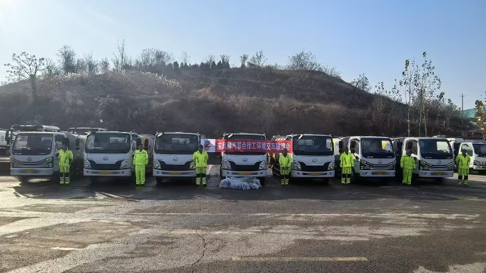12月6日,在山東濟(jì)南交車現(xiàn)場(chǎng),車輛整齊排列,徐工向當(dāng)?shù)亟桓读藘煞N不同車型的后裝壓縮式垃圾車,這些車輛將協(xié)同作業(yè),肩負(fù)起濟(jì)南市生活垃圾的收集和轉(zhuǎn)運(yùn)工作。