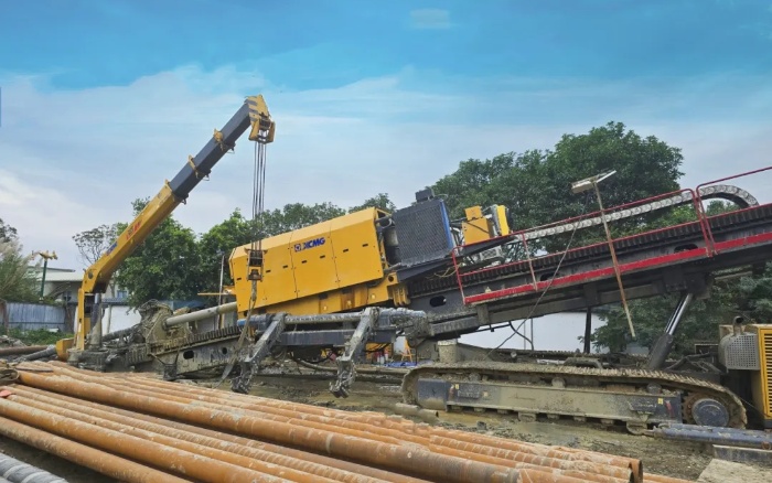 閩江地形環(huán)境復(fù)雜,花崗巖、淤泥交錯,項目停滯四年之久,施工難度極大。就在項目面臨“困境無法突破”之際,徐工XZE8200電驅(qū)水平定向鉆機臨危受命,在有利穿越路線被破壞的情況下,重新開辟路線。