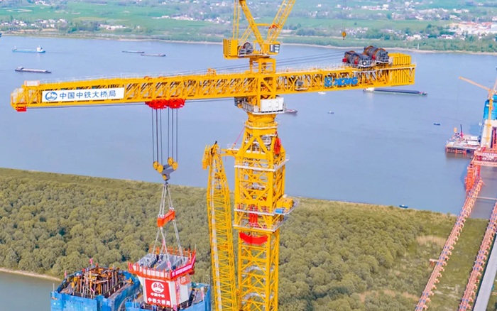 超級裝備賦能超級工程。4月10日,巢馬城際鐵路馬鞍山公鐵兩用長江大橋項(xiàng)目建設(shè)迎來重要節(jié)點(diǎn),全球最大塔機(jī)徐工XGT15000-600S順利完成首節(jié)段鋼塔吊裝,大橋進(jìn)入到上塔柱的施工階段。