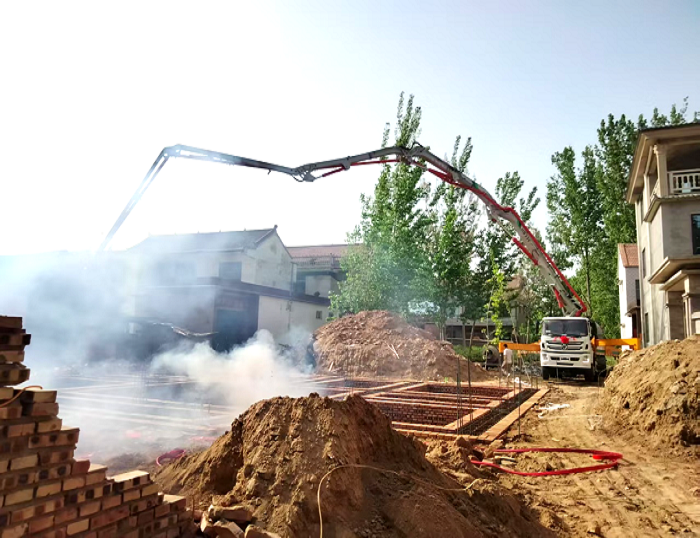 河南新農(nóng)居工地上,徐工33米泵車搭載徐汽底盤,征服泥濘坡道,靈活游走窄巷、鄉(xiāng)道,到達(dá)建筑房屋,長臂延展,將混凝土精準(zhǔn)送達(dá)房屋地基。