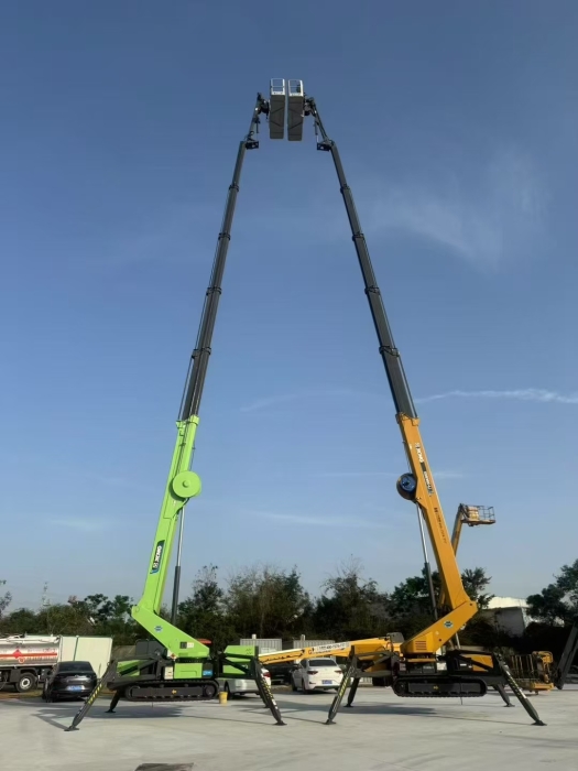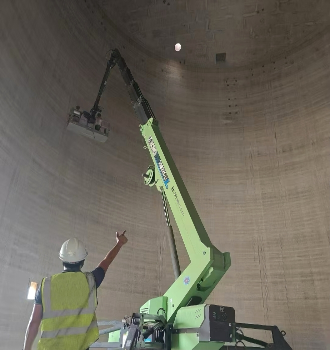 據(jù)了解,該項(xiàng)目擬新建20座淺圓倉糧倉,需同步實(shí)施內(nèi)部維護(hù)與智能化改造,包括傳感器安裝、倉壁修補(bǔ)等作業(yè)。糧倉內(nèi)部空間狹窄,粉塵敏感度高,且需杜絕燃油設(shè)備可能引發(fā)的爆燃風(fēng)險(xiǎn),傳統(tǒng)腳手架或?qū)掦w設(shè)備難以滿足需求,徐工XGS39X-Li蜘蛛履帶直臂高空作業(yè)平臺(tái)成為破題關(guān)鍵。