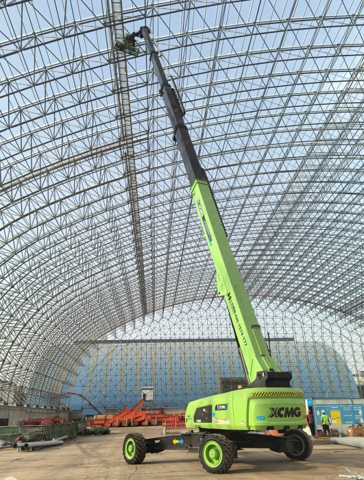 據(jù)悉,該項目需建設(shè)50米級廠房,且工地對燃料要求嚴(yán)格,傳統(tǒng)設(shè)備因高度不足、燃油限制難以滿足嚴(yán)苛施工要求,徐工XGS52ACK-Li憑借52米的最大作業(yè)高度、25m最大作業(yè)幅度及300/460kg雙載荷能力,完美承接廠房頂棚消防系統(tǒng)與管道安裝任務(wù),全程零排放、零燃油消耗,契合電廠環(huán)保施工標(biāo)準(zhǔn)。