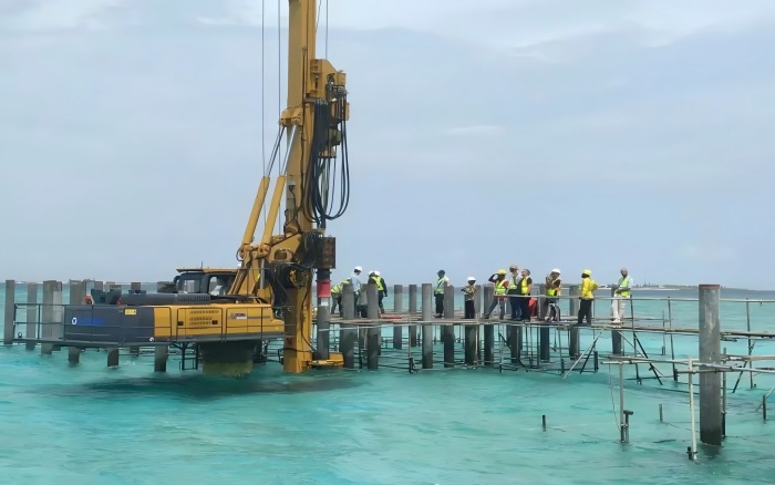 本次施工項目地質(zhì)條件復雜,表層為松散砂質(zhì)土,下層為密實珊瑚巖層,對樁基施工的精度與設(shè)備性能提出了嚴峻挑戰(zhàn)。