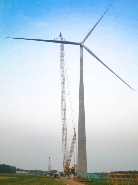 項目現(xiàn)場,XLC18000M采用180米主臂+8米副臂的超起風(fēng)電工況配置,以毫米級精度,將重達135噸的風(fēng)機機艙和長達107米的單片葉片,穩(wěn)穩(wěn)對接于170米高的混塔之上。其創(chuàng)新的鵝頭臂設(shè)計、高效拆裝技術(shù),顯著提升了施工效率。