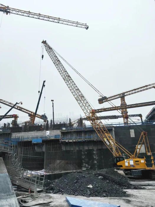 在如此高難度的施工環(huán)境中,XGC110A展現(xiàn)出的卓越穩(wěn)定性和微動性,成為項目攻堅克難的核心利器。其精準的操控猶如“穿針引線”,在鋼筋森林的方寸之地游刃有余,有效保障了多工序協(xié)同推進,為工程高效推進提供了堅實保障。