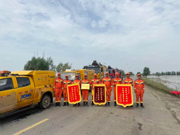 “為救災不畏艱險,戰(zhàn)險情奮勇爭先”——錦旗上的話語,不僅是災區(qū)政府與人民的真摯感謝,更是對徐工應急救援隊責任與擔當?shù)纳鷦幼⒛_。